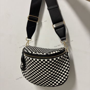 2025 tendencia diseño único Pu cuero tejido a cuadros bandolera riñonera gran capacidad pecho Sling Bag
